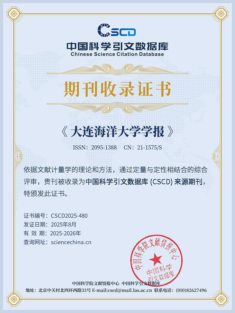 《大连海洋大学学报》入选2025年版中国科学引文数据库(CSCD)来源期刊