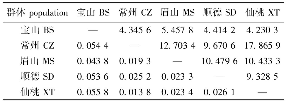 表5 长吻鮠两两群体间的遗传分化指数(对角线下方)和基因流(对角线上方)