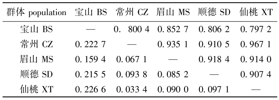 群体 population宝山 BS常州 CZ眉山 MS顺德 SD仙桃 XT宝山 BS—0.800 40.852 70.806 20.797 2常州 CZ0.222 7—0.935 10.910 50.967 1眉山 MS0.159 40.067 1—0.918 40.914 0顺德 SD0.215 50.093 80.085 2—0.907 4仙桃 XT0.226 60.033 40.090 00.097 1—