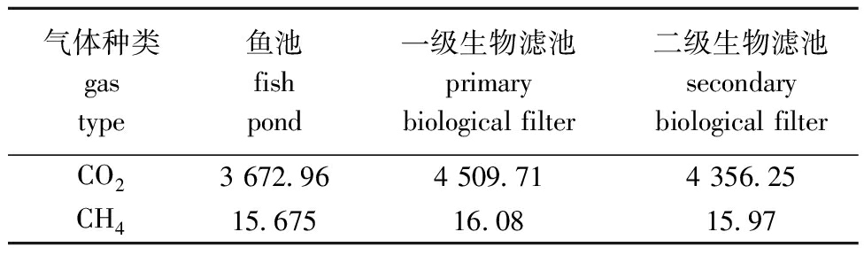 表1 鱼池、各级生物滤池的温室气体排放通量