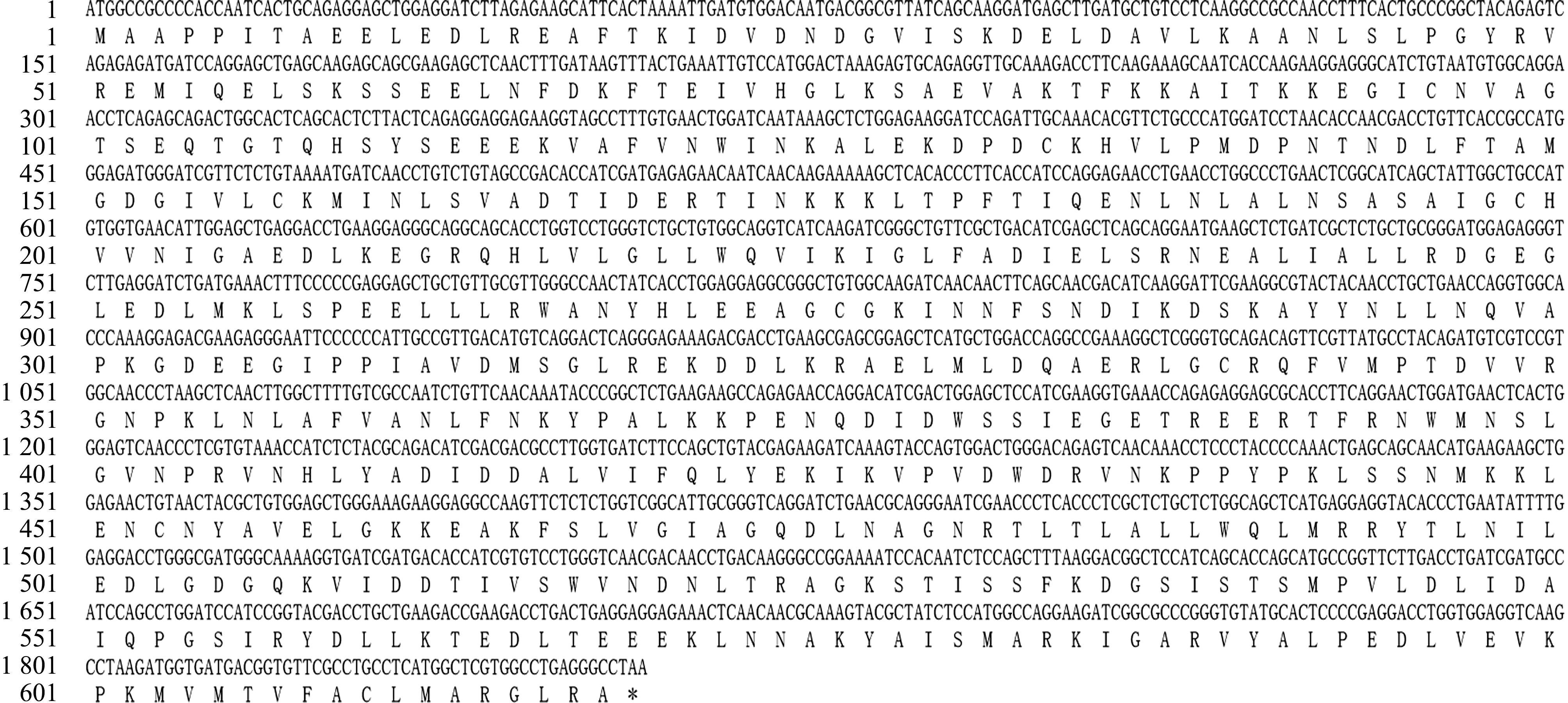 图1 OnLCP1基因核苷酸序列及其推导的氨基酸序列