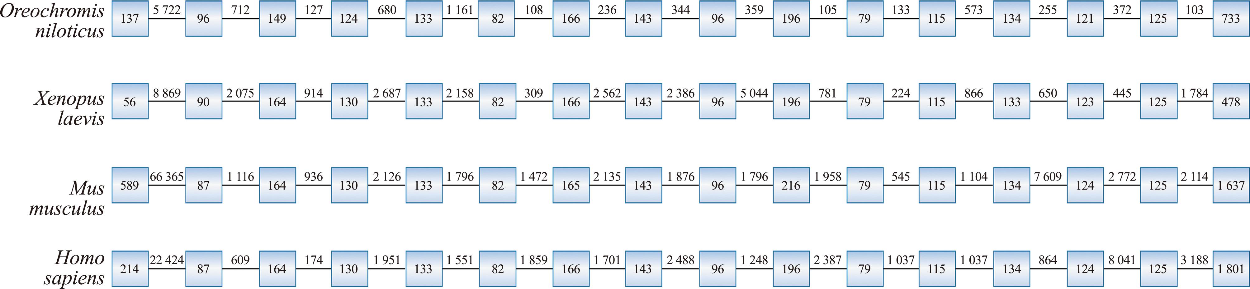 Fig.2 Intron/exon organizations of OnLCP1 with others