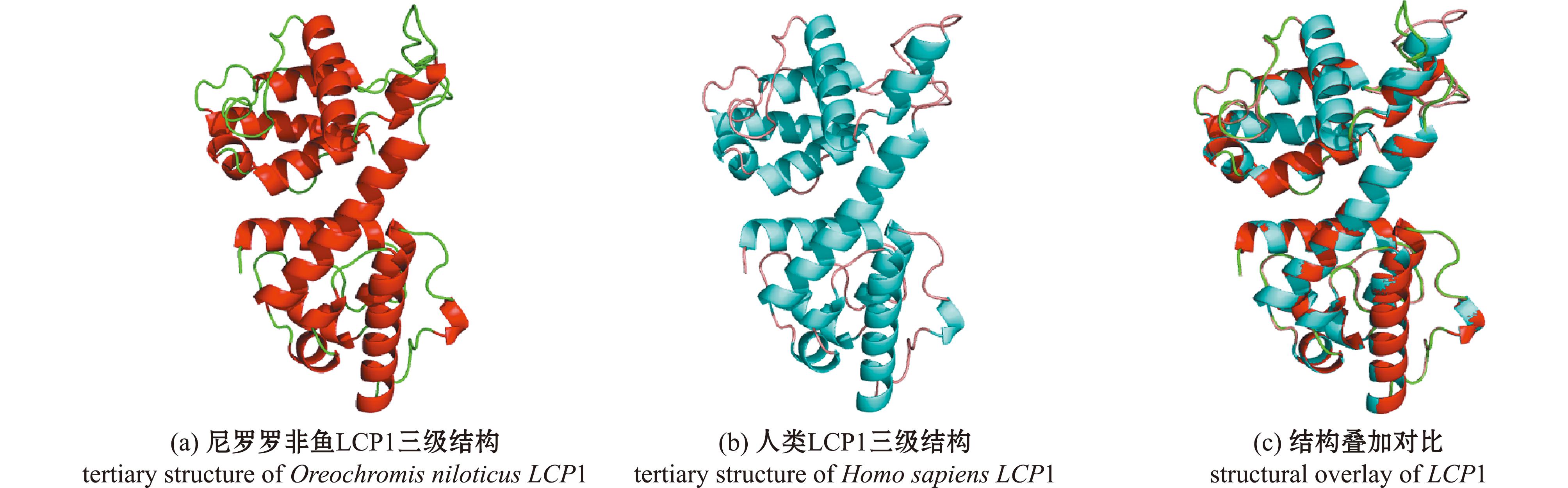 Fig.5 Tertiary structure of LCP1 in human and tilapia
