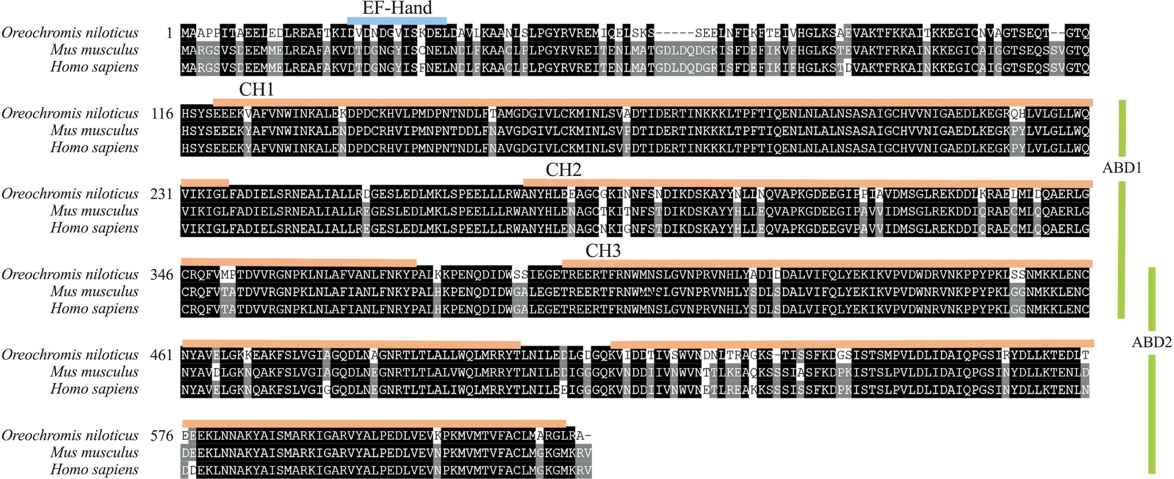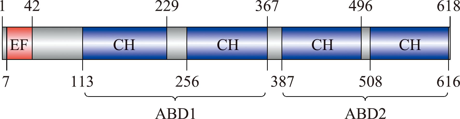 EF—EF臂结构域;CH—钙调蛋白同源结构域;ABD—肌动蛋白结合结构域。