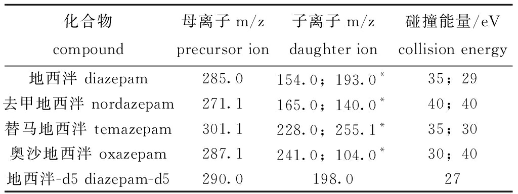 Tab.2 Multiple reaction monitoring parameters for diazepam and its metabolites