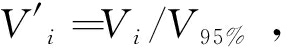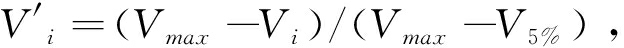为标准化后的参数值;Vi为标准化前的参数值;V5%为5%分位数值;V95%为95% 分位数值;Vmax为最大值;Pi为第i个指标的分数;n为指标个数 。