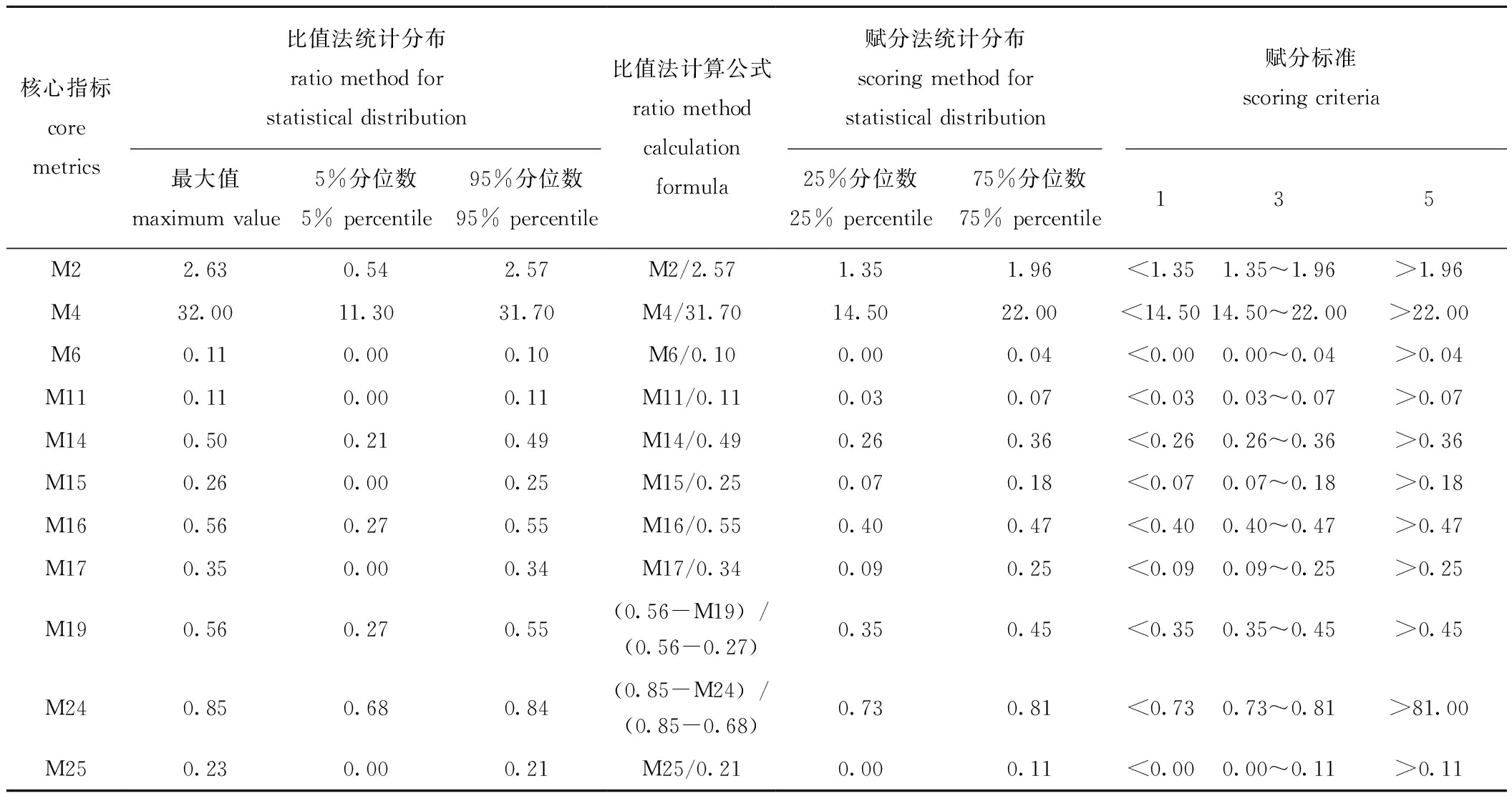表3 核心指标按比值和1、3、5赋分法计算标准