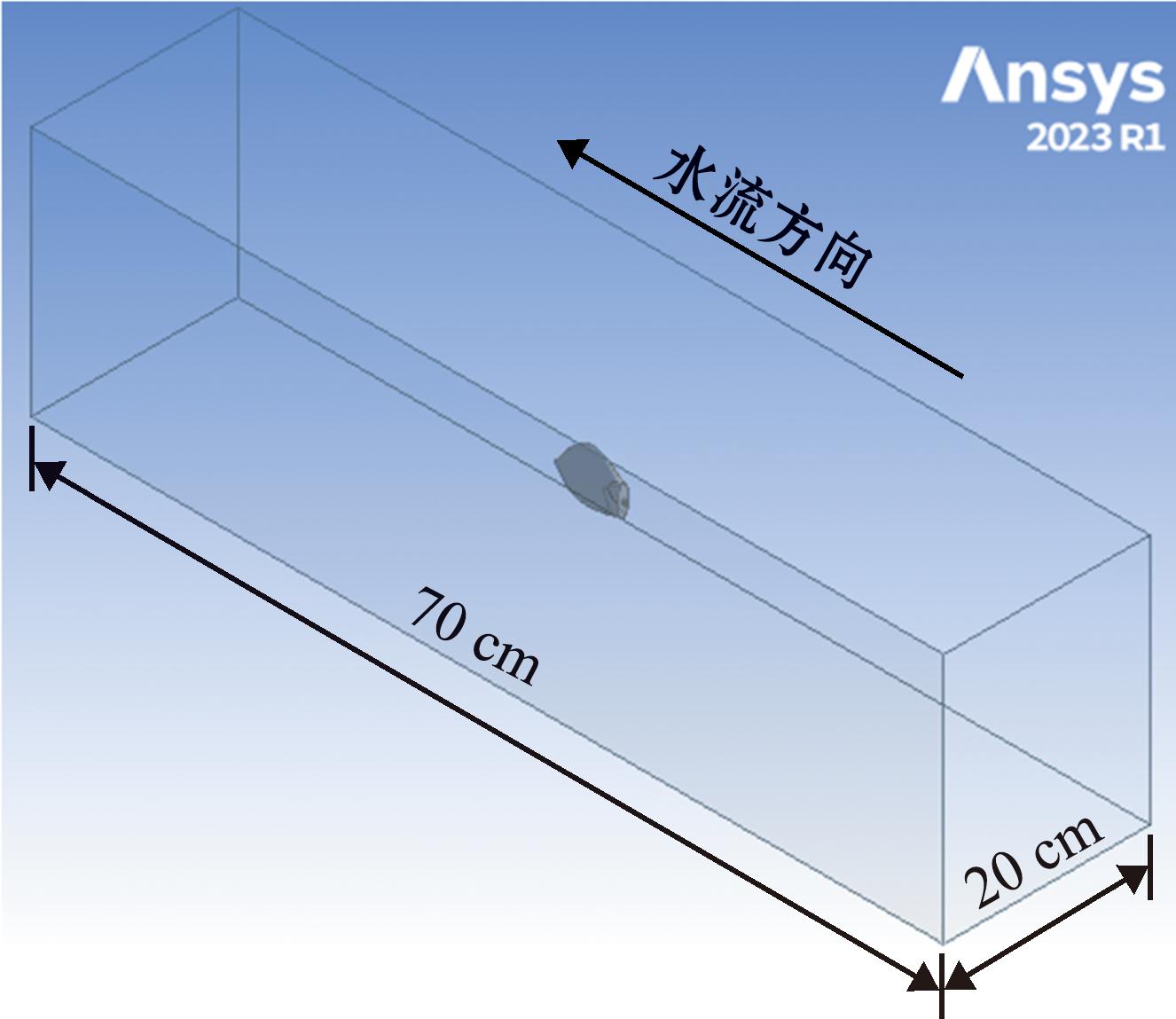 1.2.1 流体计算域的建立 大黄鱼尾鳍模型位于流体计算域中心,三维流体计算域模型的长度为70 cm、宽度和高度分别为20 cm(图4)。