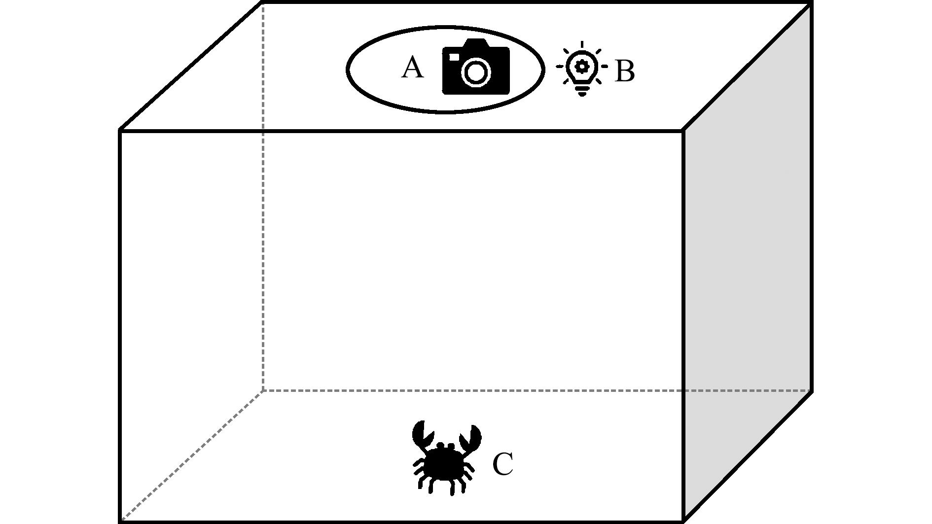 A—相机位置;B—内部光源;C—样品摆放位置。